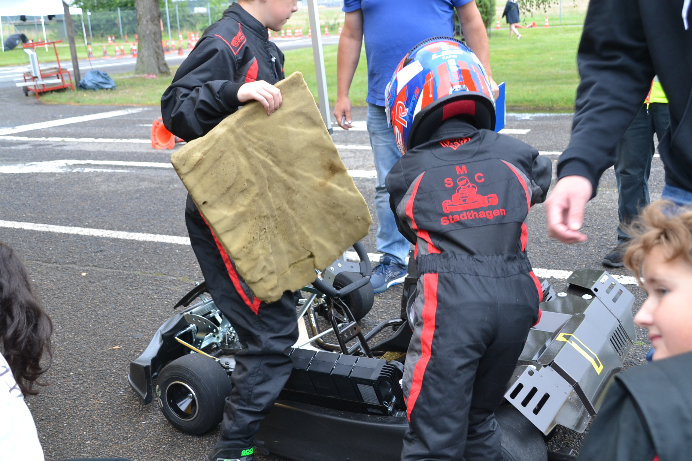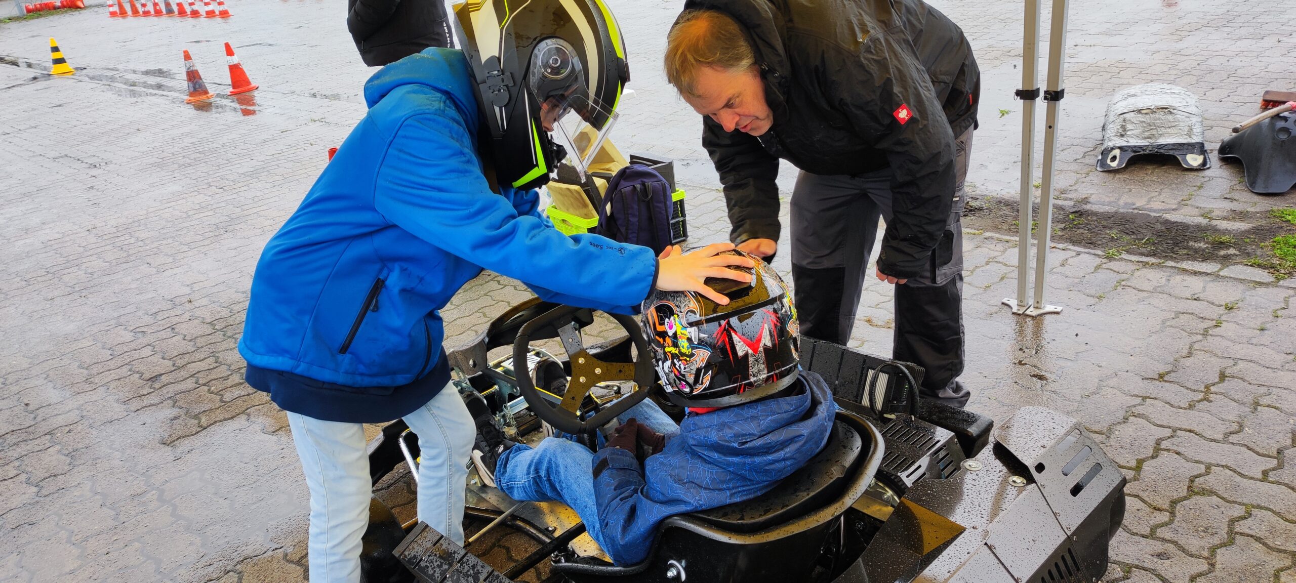 Das bedeutet nun nicht, dass alle Familienmitglieder ins Kart steigen sollen. Aber: beim wöchentlichen Training ist ein Erwachsener dabei und auch zu den mindestens 8 Rennläufen wird eigenständig gefahren.